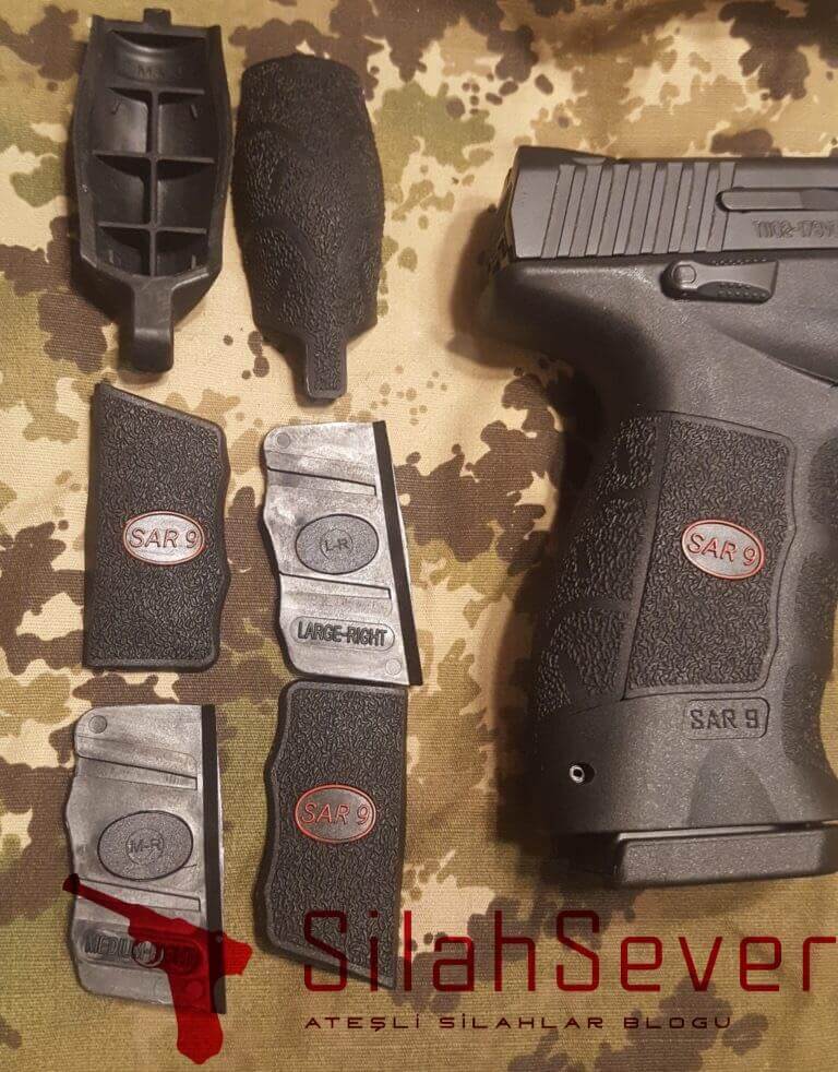 SAR-9; kabza geometri ve şeklini H&K P30 ve VP9/SFP9 tabancalarındaki kabzadan klonlanmıştır. Bu konforlu kabza, kullanıcısının el ergonomisine en uygun şekli alabilmek için kabza sırtında 3, kabza sağ ve sol yanaklarında 3’er adet olmak üzere toplamda 9 tane değişik ölçülerde kabza kapağını kullanıma sunmaktadır.